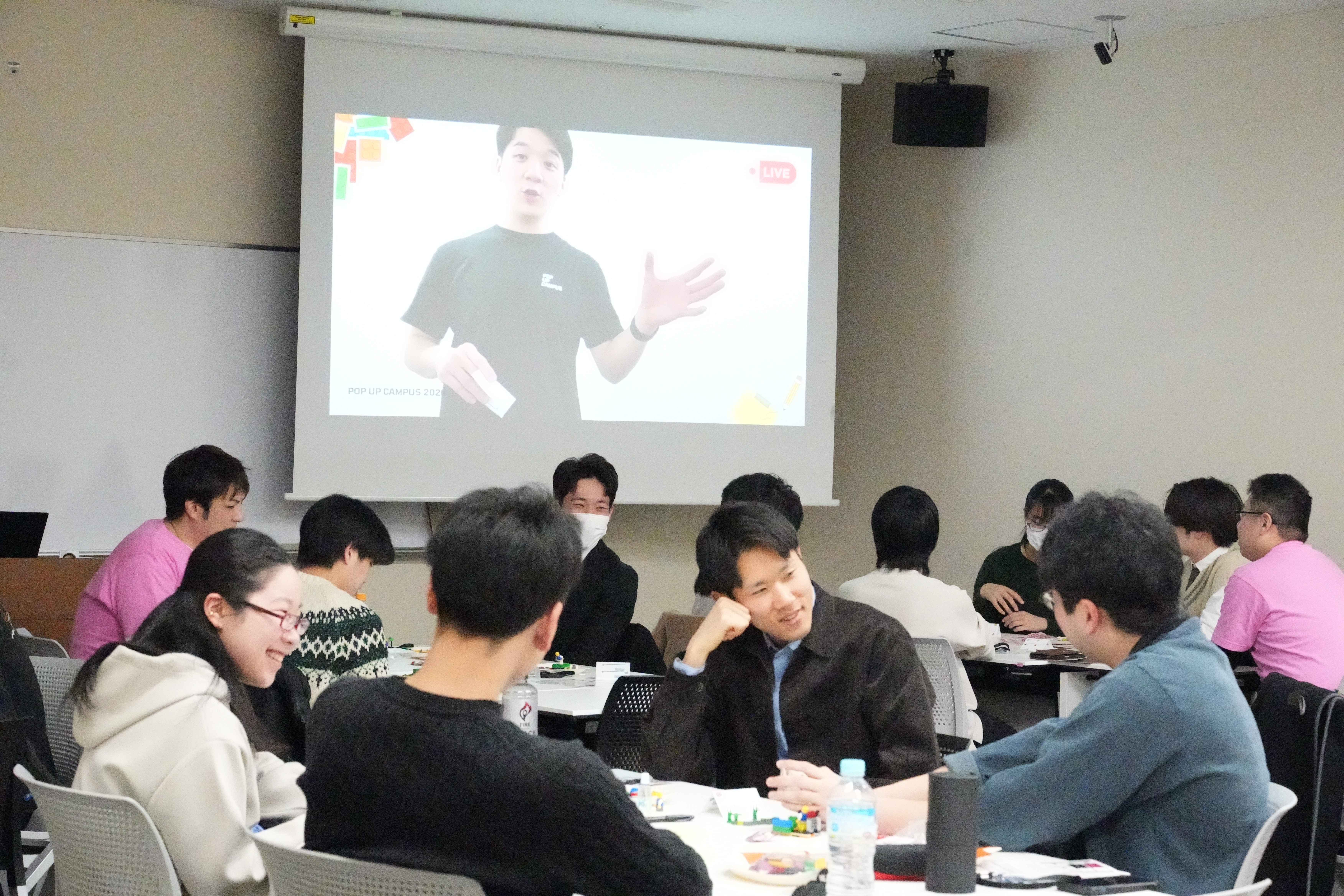 POP UP CAMPUSの熱気は、開場してから自然に生まれるものではありません。企業と学生アンバサダーが何週間もかけてワークショップを共に設計し、当日の「空気」を自分たちの手でつくり出す、その覚悟を一つにする儀式が、この円陣でした。全員でイベントを盛り上げる・楽しい空間を作る雰囲気が参加する学生にも伝播し、会場全体の一体感へとつながっていきます。